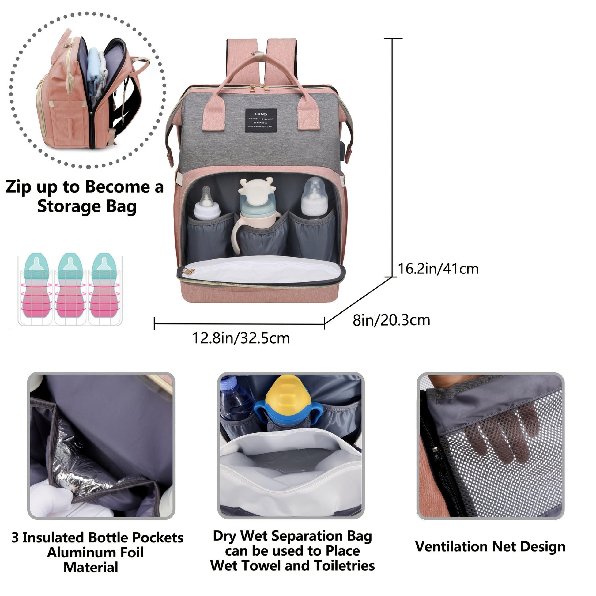 Multifunctional Diaper Bag Backpack with Changing Station & Sunshade