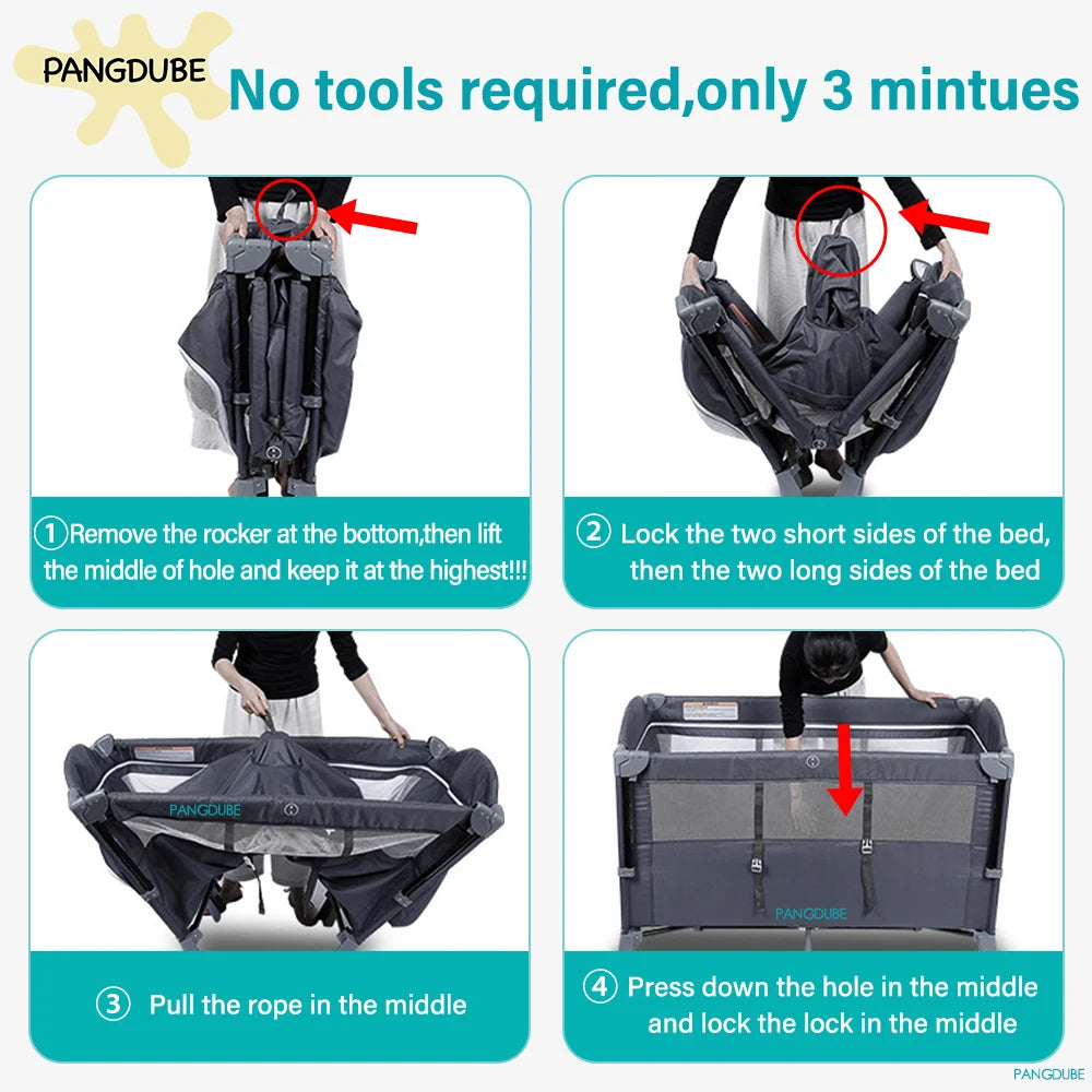 PANGDUBE 4-in-1 Baby Crib & Playpen